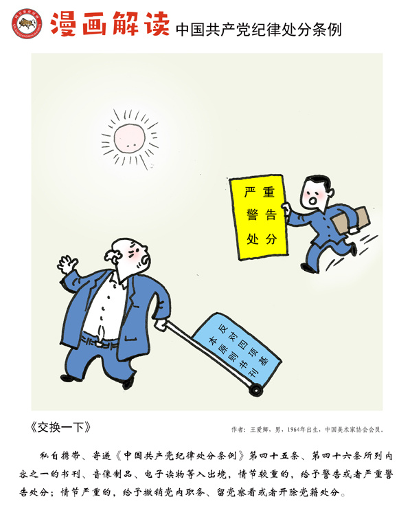 紀律是我們黨的生命線,加強紀律建設是全面從嚴治黨的治本之策。為深入貫徹落實十九屆中央紀委四次全會關于加強黨紀國法教育的部署要求,強化黨規黨紀的學習宣傳、貫徹執行,使鐵的紀律真正轉化為黨員干部的日常習慣和自覺遵循,中央紀委國家監委網站聯合河北省紀委監委,以漫畫形式對《中國共產黨紀律處分條例》進行解讀。