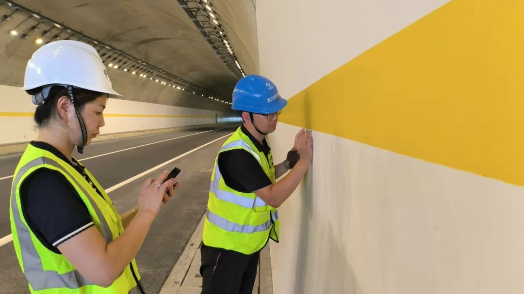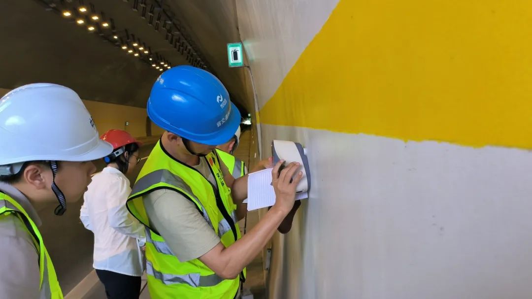 近日,漳州交發建設集團所屬通平公司委托福建省交通科研院有限公司對漳武線永定至南靖高速公路南靖段隧道洞壁亮化工程進行交工驗收前現場質量抽檢。