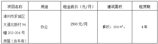 漳州市大通北新村94幢202-204號房屋承租人。現將具體事項公告如下:一、租賃標的物(標的物以現狀為準):