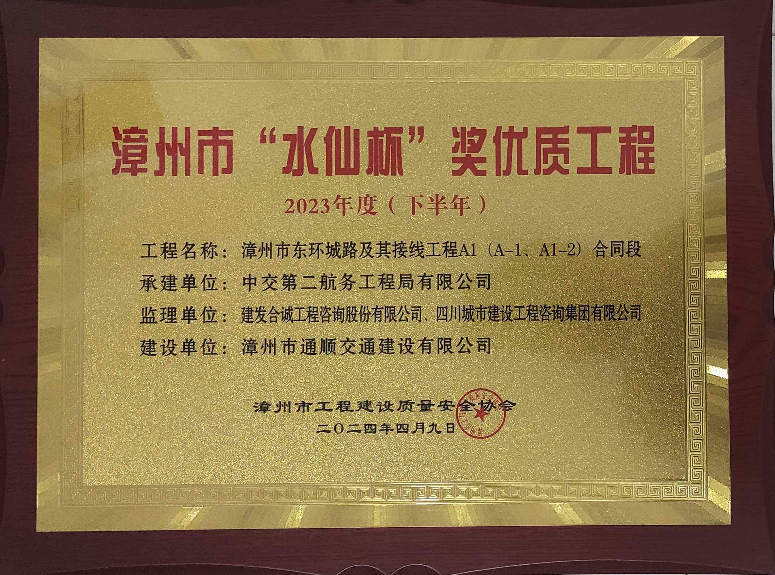 近日,漳州市工程建設質量安全協會公布2023年度(下半年)漳州市“水仙杯”獎優質工程獲獎名單。其中,漳州交通集團權屬交發建設集團金峰大橋北連接線工程及漳州市東環城路及其接線工程A1(A1-1、A1-2)合同段雙雙獲評漳州市“水仙杯”獎優質工程。