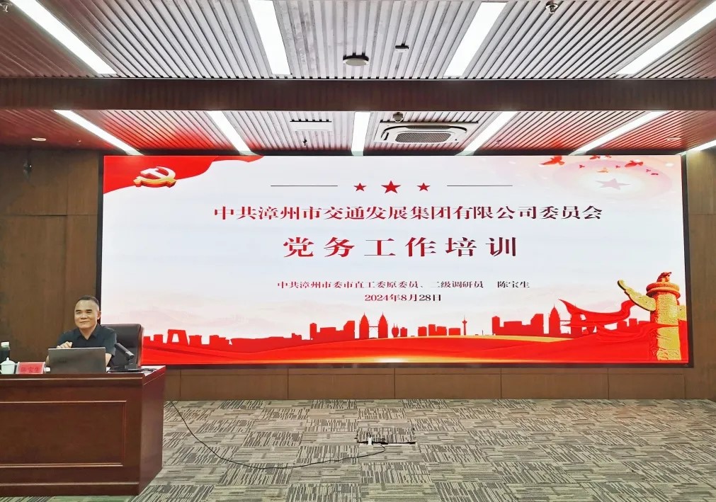為深入貫徹學(xué)習(xí)黨的二十大精神和習(xí)近平總書記關(guān)于黨的建設(shè)重要思想,進一步提高集團黨務(wù)工作者業(yè)務(wù)素質(zhì)和工作能力,切實提升基層黨建工作質(zhì)效,推動高質(zhì)量黨建引領(lǐng)集團高質(zhì)量發(fā)展,8月28日,漳州交通集團開展黨務(wù)工作培訓(xùn)。此次培訓(xùn)邀請中共漳州市委市直工委原委員、二級調(diào)研員陳寶生現(xiàn)場授課。
