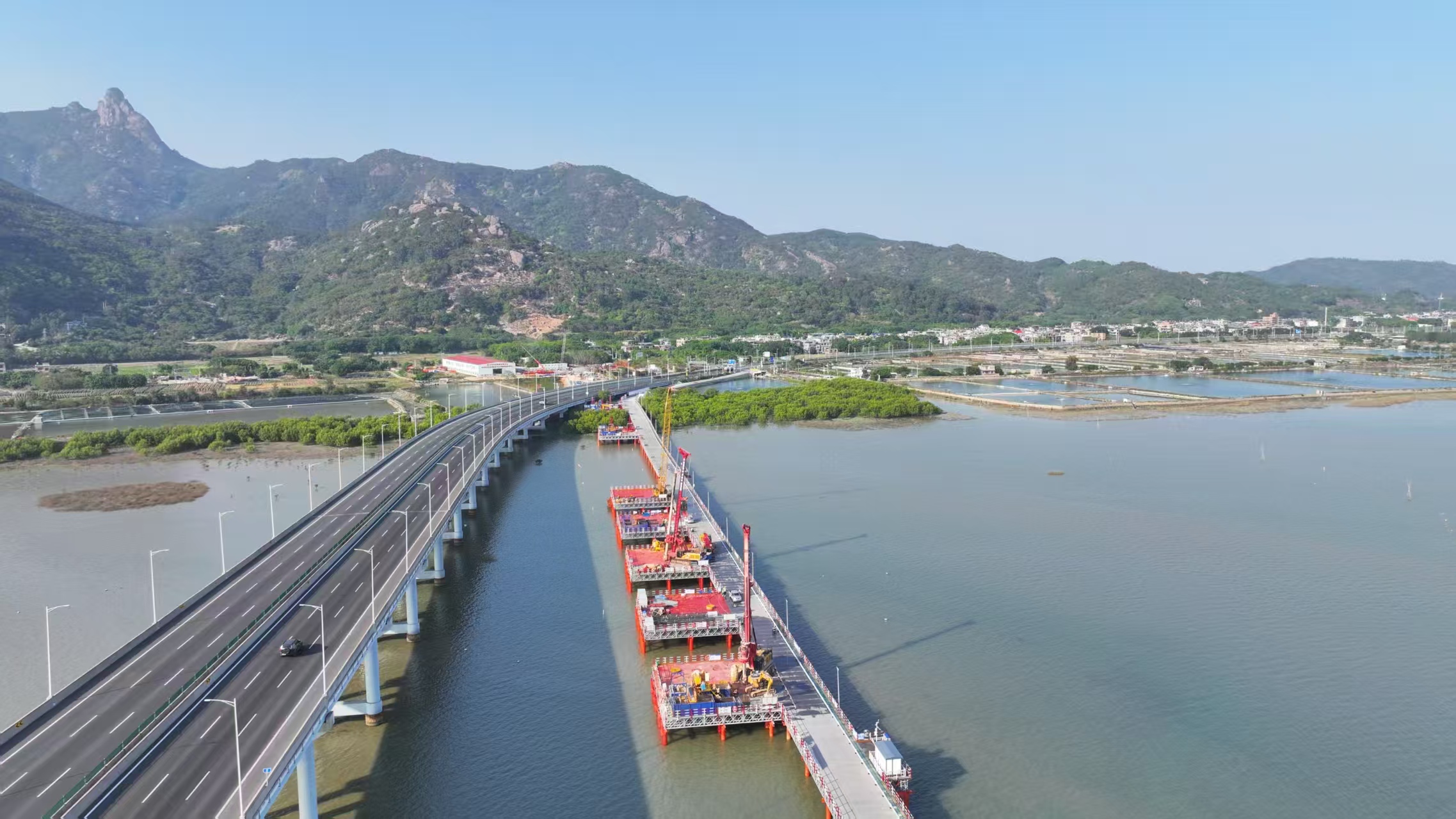 在各方的共同努力下,漳汕高鐵(福建段)3標全線已累計完成樁基975根,承臺88個,墩身71個,海上鋼棧橋完成3168米,隧道正在進行進洞施工前的準備工作。