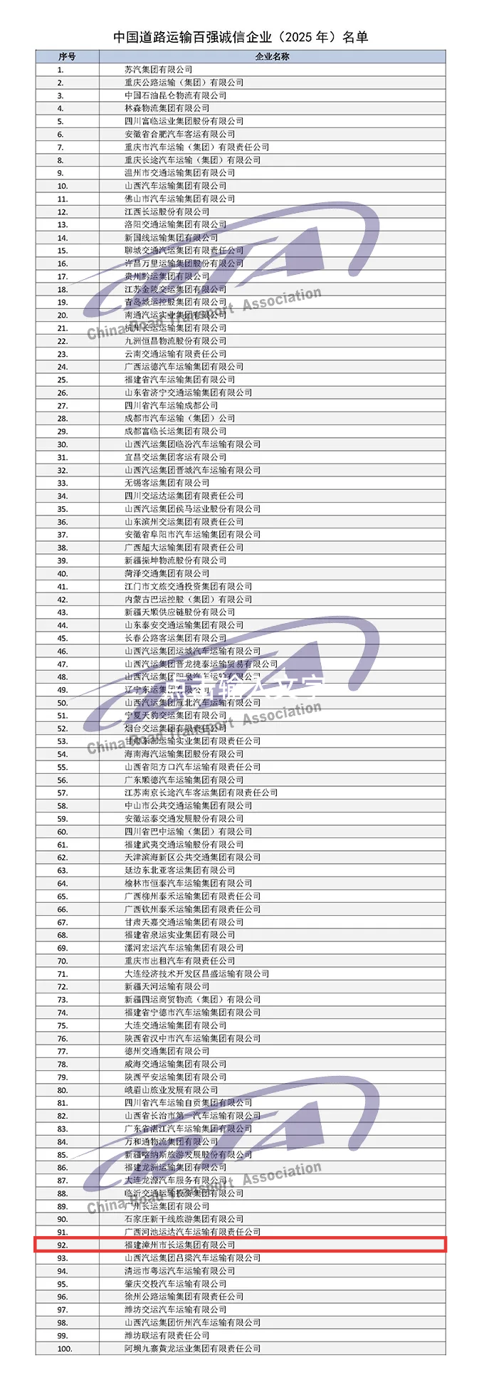 “中國(guó)道路運(yùn)輸百?gòu)?qiáng)誠(chéng)信企業(yè)”評(píng)價(jià)體系涵蓋企業(yè)規(guī)模實(shí)力、創(chuàng)新能力、社會(huì)公信及誠(chéng)信經(jīng)營(yíng)等維度,由中國(guó)道路運(yùn)輸協(xié)會(huì)主辦,是行業(yè)貫徹中央關(guān)于建設(shè)交通強(qiáng)國(guó)、推動(dòng)現(xiàn)代流通體系發(fā)展決策部署的重要實(shí)踐,是國(guó)內(nèi)道路運(yùn)輸行業(yè)最具權(quán)威性和公信力的品牌活動(dòng)之一。